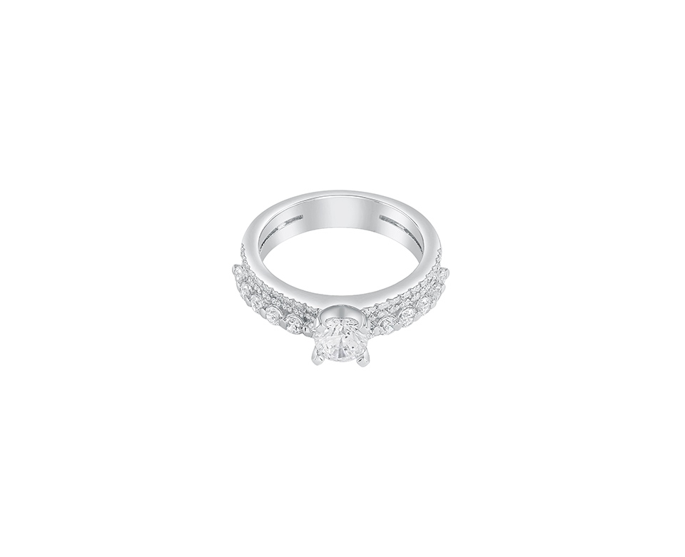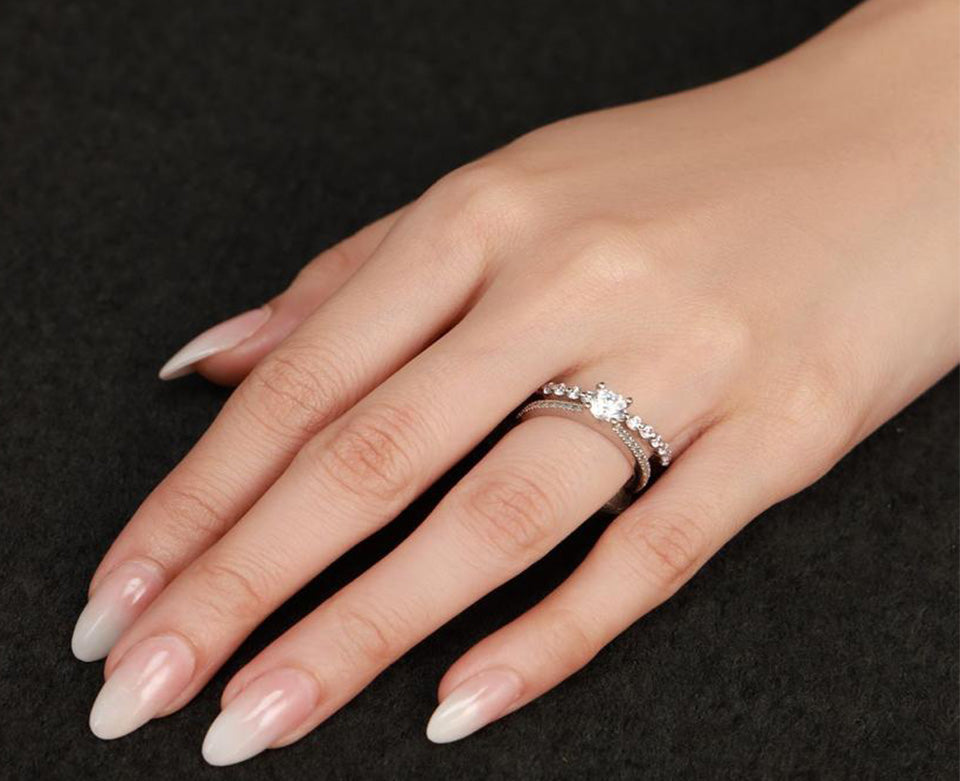 This pure silver, white gold plated set includes one statement ring with an elevated cubic zirconia stone that shines like a diamond paired with a matching band fully encrusted with sparkling cubic zirconia stones for added glamour. Wear them together or separately for work, college, or nights out! Versatile and timeless, this set complements any look.