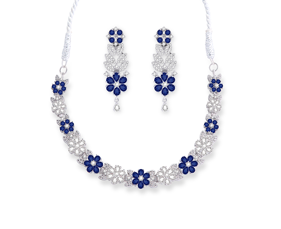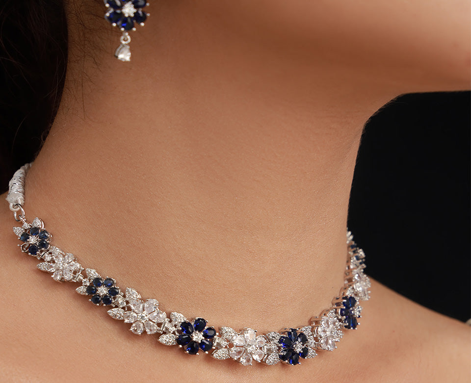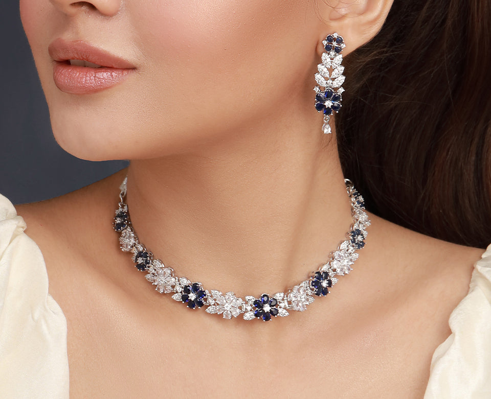 Hundreds of cubic zirconia stones that shine like diamonds Intricate blue and silver flower designs that sparkle like the night sky.