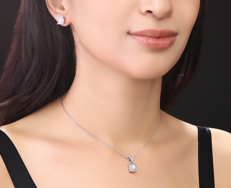 A minimalistic pendant featuring a single brilliant-cut zirconia in a classic four-prong setting, suspended from a loop adorned with smaller zirconia stones for a subtle touch of sparkle.